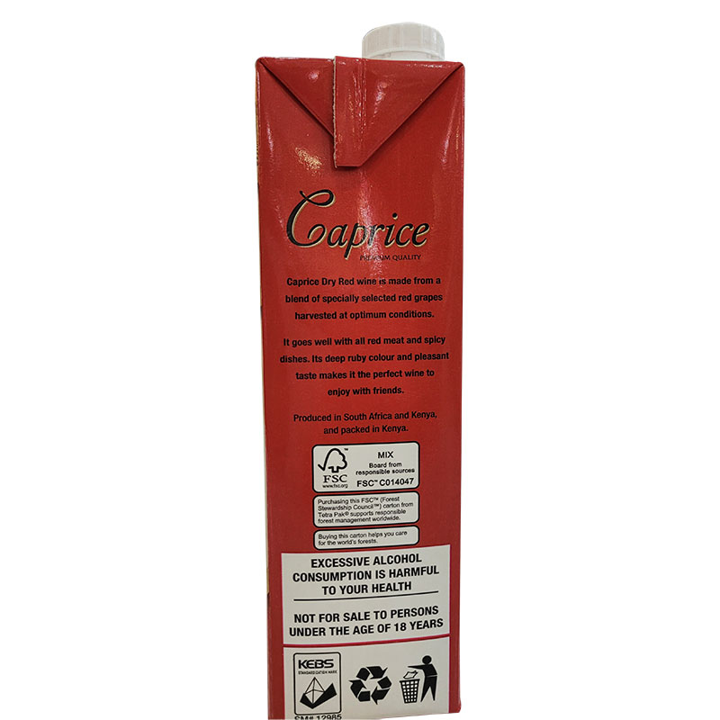 Order online your Caprice Dry Red Wine 1 Litre from Liquor Square today. Caprice Dry Red Wine 1 Litre price in Kenya is Ksh. 800 only. It contains 12.5% ABV (Alcohol By Volume). Order online and get it delivered to your doorstep within a few minutes in Nairobi.